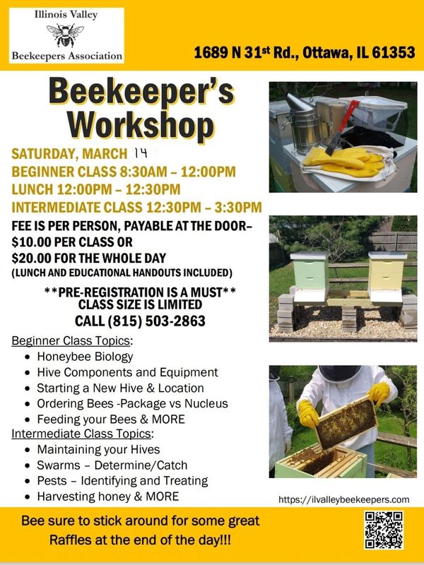 Also the IVBA Beginner and Intermediate Bee Class will be on Saturday, March 14th. Details above, please call the number on the flyer or one of the officers to register.